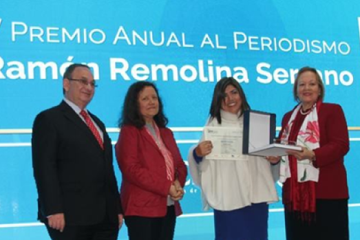Aurelia Gavidia, recibiendo el premio como el mejor programa radial…